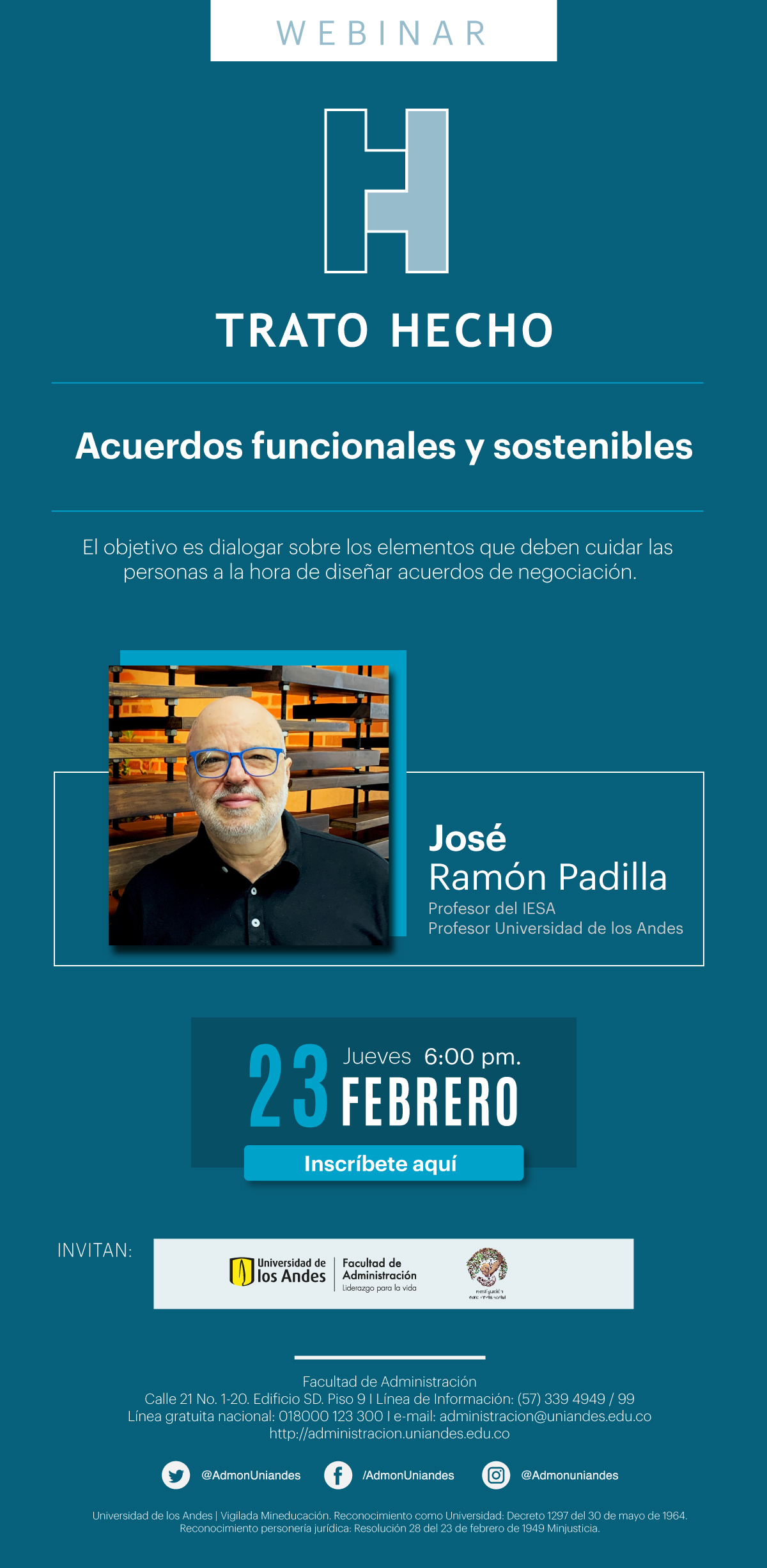 ¡Participa en nuestro primer webinar del año con el profesor José Ramón Padilla! Dialogaremos sobre elementos a tener en cuenta para acuerdos de negociación funcionales y sostenibles.